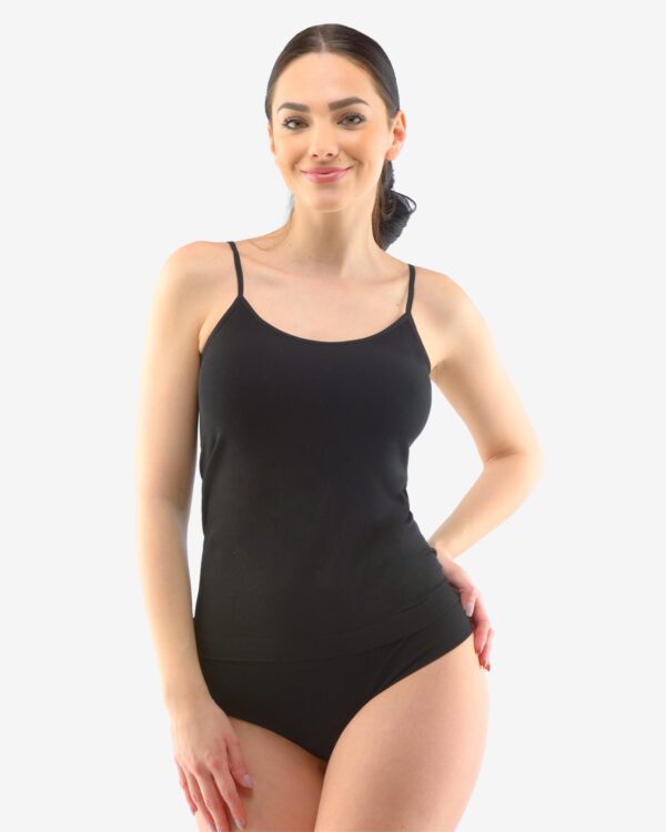 Predĺžená košieľka s úzkymi ramienkami ponúka maximálnu slobodu pohybu a komfort, na ktorý sa rýchlo zvyknete! Bezšvové prevedenie a delikátne zakončenie okrajov zabezpečujú absolútne hladký pocit na pokožke, takže môžete zabudnúť na akékoľvek otlaky či škrabanie. Materiál je vyrobený zo 70% bambusovej viskózy, 22% polyamidu a 8% elastanu – vďaka tomu je košieľka výnimočne príjemná, prirodzene antibakteriálna a perfektne odvádza vlhkosť. Dlhší strih ochráni váš chrbát pred nachladnutím a udržuje príjemný tepelný komfort. Vhodná pre vrstvenie i samostatné nosenie – podčiarkne každý outfit ľahkosťou a sviežim, ženským šarmom. Kolekcia Bamboo Pure Line sa vyznačuje vyššou gramážou úpletu, skvelou tvarovou stálosťou a dlhodobou odolnosťou. Elegantná jednoduchosť, dotyk prírody a ekologický prístup – s touto košieľkou budete sama sebou v každej situácii.