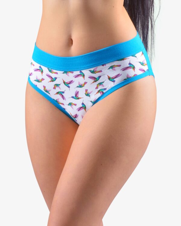Elegantné nohavičky klasického strihu so širším pásovým lemom, ktoré zladia pohodlie s citom pre detaily. Zložené z 92 % bavlny a 8 % elastanu, ponúkajú priedušnosť a jemnosť prírodného materiálu doplneného o pružnosť, vďaka čomu držia svoj tvar a prispôsobia sa vašim krivkám. Pásový lem je začištený širším lemom z rovnakého materiálu, ktorý podporuje správne držanie nohavičiek bez nežiaducieho zošmyknutia. Okraje sú starostlivo zašité úzkym lemem, aby nebola narušená jemnosť materiálu a nohavičky nezanechávali stopy pod oblečením. Predný diel zdobí jemná potlač, zadná časť a lemy sú v jednoduchom jednobarevnom prevedení. Tento model patrí do kolekcie Disco XVII, ktorá prináša do spodnej bielizne šťavnaté farby a radostné vzory. Nohavičky sú dokonalé pre ženy, ktoré uprednostňujú kvalitu, komfort a nadčasový dizajn, vhodné na každodenné nosenie i na chvíle, kedy chcete byť jednoducho elegantné. Doprajte si hrejivý pocit sebadôvery v bielizni, ktorá vás podrží vždy a všade.