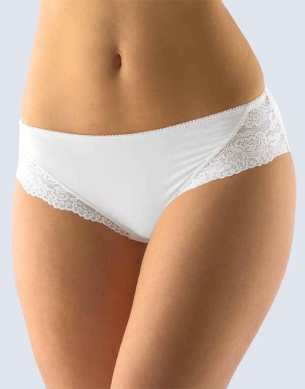 Nechajte sa rozmaznávať luxusom a leskom francúzskych nohavičiek z výnimočnej kolekcie La Femme. Tento elegantný model prekvapí svojím dokonale sediacim francúzskym strihom so širším bokom, ktorý zabezpečí maximálne pohodlie a lichotivý vzhľad. V páse je jemná elastická gumička s ozdobným okrajom, ktorá nohavičky krásne drží a zároveň im dodáva výnimočný detail. Prednú časť zdobia vkusné čipkované vsadky; celý kúsok je jednofarebný, a preto ho ľahko skombinujete s ďalšimi kúskami bielizne.