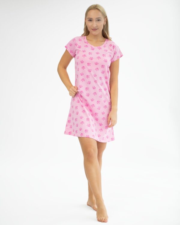 Dámska nočná košieľka s krátkym rukávom z čistej bavlny, ktorá ponúka dokonalý komfort a prírodný pocit na pokožke. Elegantný kvetinový vzor a dĺžka po kolená dodávajú tomuto kúsku jemnosť a ženskosť, zatiaľ čo okrúhly výstrih zaisťuje pohodlné obliekanie bez zaškrtenia. Táto ľahká a hrejivá nočná košieľka z kolekcie Pyžamá 2022 je určená pre ženy, ktoré hľadajú kvalitu, štýl a nekompromisný komfort na každú noc. Vďaka 100 % bavlnenému materiálu si doprajete pocit sviežosti a prírodnej čistoty, ktorá podporuje zdravý spánok. Vstúpte do sveta sebavedomia a jemnej elegancie s kúskom, ktorý vás bude rozmaznávať každú noc.