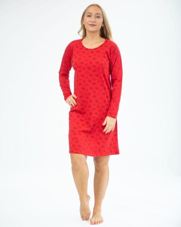 Nočná dámska košieľka s dlhým rukávom, vyrobená zo 100 % bavlny, ktorá zabezpečuje maximálne pohodlie a prirodzenú priedušnosť počas celej noci. Táto elegantná košieľka s decentným kvetinovým vzorom siaha po kolená a má jemne zaoblený výstrih. Prírodný materiál doprajete vašej pokožke komfortný odpočinok a pocit hebkosti, aký si zamilujete. Vďaka kvalitnému spracovaniu a čistému dizajnu je ideálna pre ženy, ktoré si potrpia na komfort, slobodu pohybu a jemnú ženskosť. Táto košieľka z kolekcie Pyžamá 2022 vás bude rozmaznávať každú noc, aby váš spánok bol naozaj kvalitný a plný pokoja. Vyberte si hrejivý kúsok, ktorý dýcha s vami a zvýrazní vašu prirodzenú krásu. Objavte radosť z odpočinku v luxuse 100 % bavlny a cíťte sa žensky, elegantne a sebavedomo už od prvého okamihu.