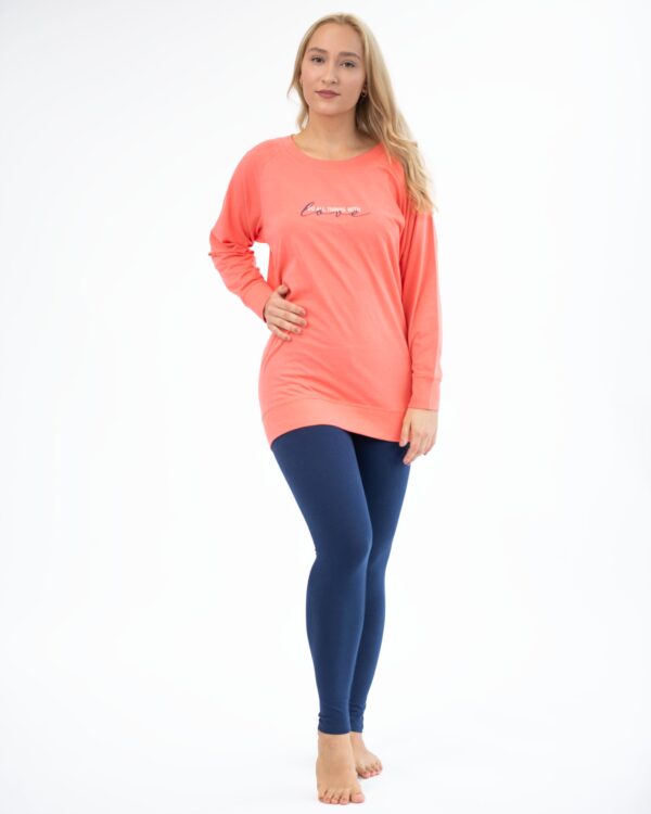 Vstúpte do sveta neodolateľného pohodlia s dámskym dlhým pyžamom z kolekcie 2022, ktoré je vyrobené zo 100% bavlny. Tento model s „netopierími“ rukávmi a priliehavými legínami je ako stvorený pre milovníčky jemnosti, prirodzených materiálov a decentnej elegancie. Bavlnený úplet príjemne hladí pokožku, zaisťuje optimálnu priedušnosť a je vhodný aj pre citlivú pokožku. Dlhé rukávy ochránia pred chladom, zatiaľ čo moderný strih podčiarkuje ženský pôvab. Pyžamo sa hodí aj na domáce leňošenie či relax po náročnom dni. V jednoduchosti je krása – stavte na kvalitný materiál, ktorý si zamilujete pri každom nosení. Vaša pohoda je prioritou, preto si vychutnajte zaslúžený oddych v luxusne jemnom pyžame, ktoré kráča s trendmi a vám dodá pocit sebavedomia i doma!