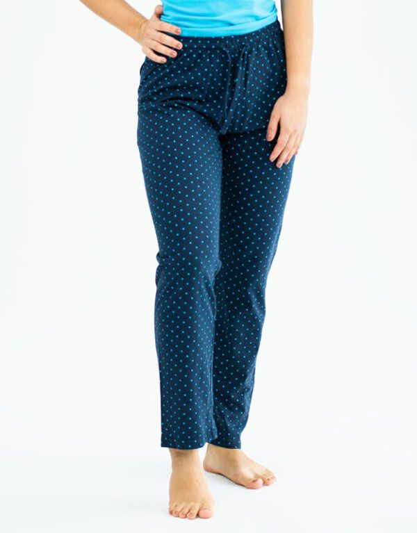 Dlhé pyžamové nohavice s hravým bodkovaným vzorom vnesú do vašich večerov radostnú atmosféru a pohodu. Navrhnuté pre pohodlný spánok i domáce nosenie, tieto nohavice sú vyrobené z 100% bavlny, ktorá zabezpečí jemnosť, odolnosť a maximálnu priedušnosť. Vďaka voľnému strihu a príjemnému materiálu sa prispôsobia každej postave a zaručia vám luxus aj počas oddychu. Originalita vzoru skvelo oživí každý domácí outfit a vyčarí vám úsmev na tvári . Praktická voľba na každodenné nosenie doma, na spánok, oddych či dokonca na víkendové leňošenie s vašimi blízkymi. Kolekcia: Pyžamá 2022.
