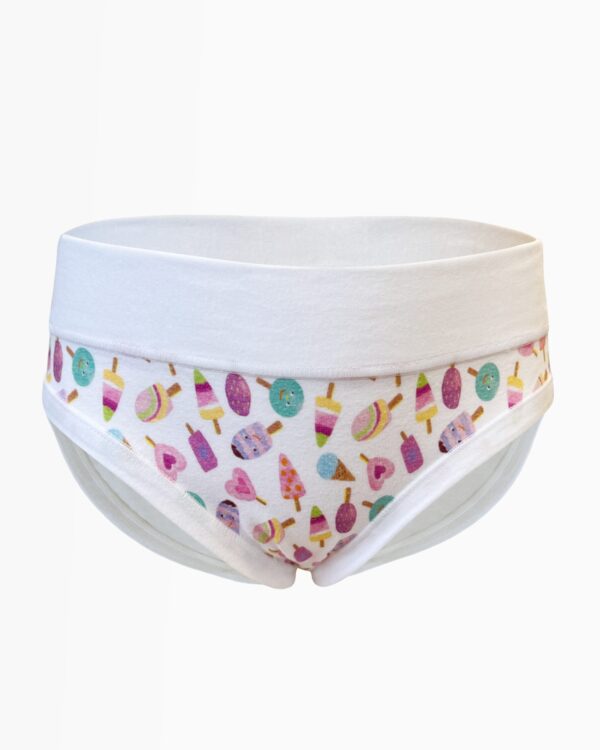 Tieto dievčenské nohavičky v klasickom strihu sú určené pre mladé dámy, ktoré chcú prepojiť komfort s originálnym dizajnom. Pás je ozdobený širším lemom, ktorý perfektne drží, a celkový vzhľad dopĺňa veselá potlač s motívom nanukov na prednej časti – ideálna pre všetky milovníčky veselých tém! Zadná strana a lemy zostávajú jednofarebné, čo pôsobí elegantne a moderne. Výnimočné zloženie 92 % bavlny a 8 % elastanu zabezpečuje kombináciu priedušnosti, jemnosti a pružnosti, čím sa nohavičky stávajú skvelou voľbou na každý deň i pre citlivú pokožku. Úplet je ideálny pre tých, ktorí preferujú prírodné materiály, pričom elastan garantuje, že nohavičky si držia tvar aj po opakovanom praní. Kolekcia Disco je synonymom hravosti, sviežosti a radosti v dievčenskom šatníku. Nahoďte sebavedomie a pohodlie v každom momente – tieto nohavičky sú pripravené byť vašou obľúbenou voľbou!