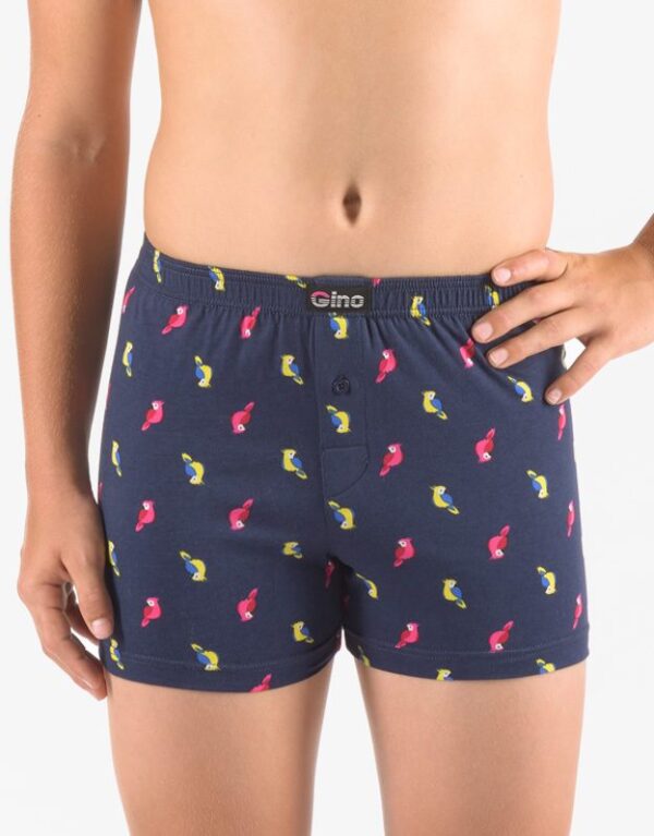 trenky voľné chlapčenské, šitá, tlac značky GINA, kód 25016. Zloženie 100% bavlnaVolné trenky ze 100% bavlny jsou ideální volbou pro každého, kdo má rád klasický pohodlný střih volných trenek a přírodní materiály. Tento kousek má hravý vzor a v pase nášivku s logem Gino. Dobře padnoucí pasová guma a rozparek na jeden knoflík jsou samozřejmostí. Tenhle super kousek vám prostě nemůže chybět!.