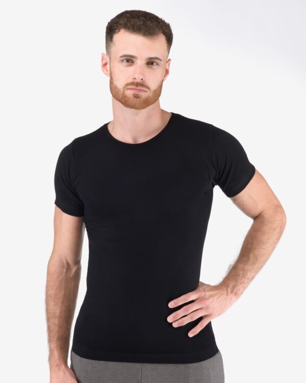 Krátky rukáv a bezšvová technológia dávajú tomuto pánskemu tričku z kolekcie Bamboo Pure Line výnimočný komfort a elegantný vzhľad. Materiál s obsahom 70 % bambusového vlákna zaručuje jemný, hladký pocit na pokožke, zatiaľ čo polyamid a elastan pridávajú pružnosť, odolnosť a tvarovú stálosť. Dolný kraj a výstrih s lemovacím prúžkom sú bezšvové, pre minimalizovanie tlaku a lepšie usadenie na tele. Tento kúsoček je navrhnutý pre mužov, ktorí si potrpia na kvalitu, dlhú životnosť a prvotriedny pocit pohodlia. Jednofarebný design ponúka univerzálnosť a eleganciu, ktorá sa hodí na každodenné nosenie, ale aj pod formálnejšie oblečenie. Bamboo Pure Line je ideálnou voľbou pre tých, ktorým záleží na kombinácii luxusu, funkčnosti a udržateľnosti.