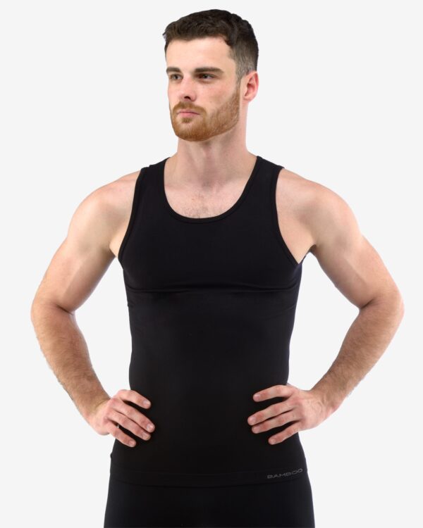 Pánsky nátelník so širšími ramienkami v elegantnom jednofarebnom prevedení je stelesnením pohodlia a luxusu. Bezšvová konštrukcia prechádza hladko popri pokožke, minimalizuje trenie a zvyšuje priedušnosť. Materiálové zloženie pozostáva z 80 % bambusového vlákna, známeho svojou prírodnou jemnosťou a antibakteriálnymi vlastnosťami, doplneného o 16 % polyamidu a 4 % elastanu, ktoré dodávajú látke pružnosť a odolnosť. Dolné okraje a výstrih sú starostlivo spracované bezešvovou technológiou a lemovacími prúžkami, ktoré zabezpečujú výbornú pevnosť a tvarovú stálosť. Tento model je súčasťou luxusnej kolekcie Eco Bamboo, ktorá vyniká vysokým obsahom bambusového vlákna a ekologickým spracovaním – od samotného vlákna až po farbenie a finálnu úpravu textílie. Prádlo je navyše balené v ekologických obaloch bez použitia laminácie, čo podporuje ochranu životného prostredia. Nátelník je pohodlný, odvetraný a mäkký na dotyk – ideálny na každodenné nosenie pre mužov, ktorí si cenia krásu, funkčnosť a prírodnú udržateľnosť.