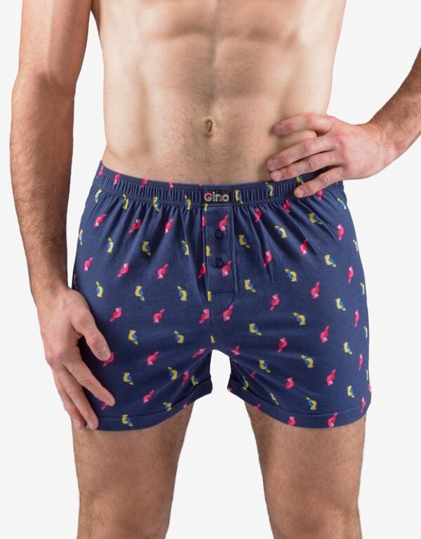 Voľné pánske trenky zo 100% bavlny sú dokonalou voľbou pre tých, ktorí si cenia prirodzenosť a komfort. Nadčasový strih zabezpečí pohodlie pri každom pohybe, zatiaľ čo široká pásová guma jemne obopína pás bez tlačenia. Nohavičky sú precízne začištené, čím minimalizujú podráždenie. Predná časť je vybavená rozparkom na dva elegantné gombíky, čo umožňuje jednoduché obliekanie pri zachovaní štýlového vzhľadu. Zadný diel je členitý stredovým švom pre lepšiu prispôsobivosť. Trenky sú oživené nápadným vzorom, ktorý pôsobí dynamicky a štýlovo, no zostáva decentný. Bavlnený materiál poskytuje vynikajúcu priedušnosť a komfort, čo ich predurčuje ako ideálne spodné prádlo pre každodenné nosenie či voľný čas. Spoznajte pohodlie, ktoré prináša čistá bavlna a kvalitné spracovanie v jednom kúsku.