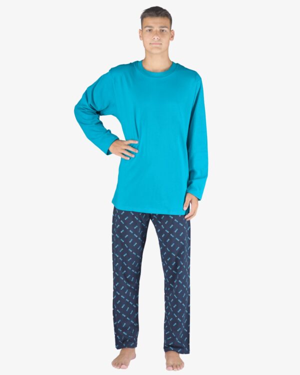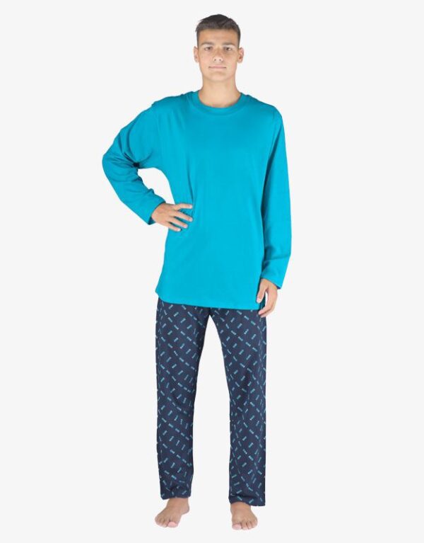 Nechajte sa rozmaznávať luxusom pohodlia s týmto pánskym pyžamom s dlhými nohavicami so športovým motívom formule. Kombinácia jednoduchého jednofarebného trička s dlhými rukávmi a originálnych nohavíc ortuťovo vynáša vaše domáce pohodlie na nový level. Materiál zo 100 % bavlny je synonymom mäkkosti, priedušnosti a zdraviu nezávadnej starostlivosti aj o najnáročnejšiu pokožku, zatiaľ čo voľný strih pyžama zaručuje úplnú slobodu pohybu bez obmedzení. Pyžamo nielen akcentuje vašu osobnosť vďaka zaujímavým vzorom, ale je tiež ideálne na príjemný odpočinok nielen v noci, ale aj počas voľných chvíľ cez deň. Člen kolekcie Pyžamá 2023 je určený všetkým mužom, ktorí dávajú prednosť komfortu, kvalite spracovania a nadčasovému dizajnu.