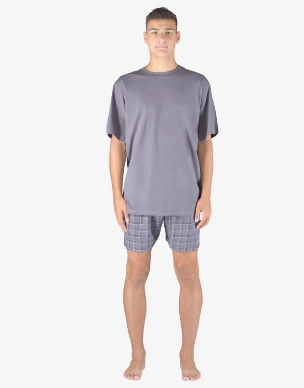 Pánske krátke pyžamo z kolekcie Pyžamá 2023 je vytvorené z jemného bavlneného úpletu, ktorý poskytuje maximálne pohodlie počas spánku aj oddychu. Vyrobené zo 100% bavlny zabezpečuje priedušnosť a šetrnosť k pokožke, čo oceníte predovšetkým počas teplých nocí. Krátke nohavice sú doplnené károvaným vzorom, ktorý dodáva pyžamu elegantný a zároveň svieži vzhľad. Jednofarebné tričko s krátkymi rukávmi skvele ladí a dopĺňa celý set. Ideálny kúsok pre mužov, ktorí uprednostňujú pohodlie bez kompromisov a moderný dizajn. Zrelaxujte sa vo večerných hodinách v tomto štýlovom a príjemnom pyžame.
