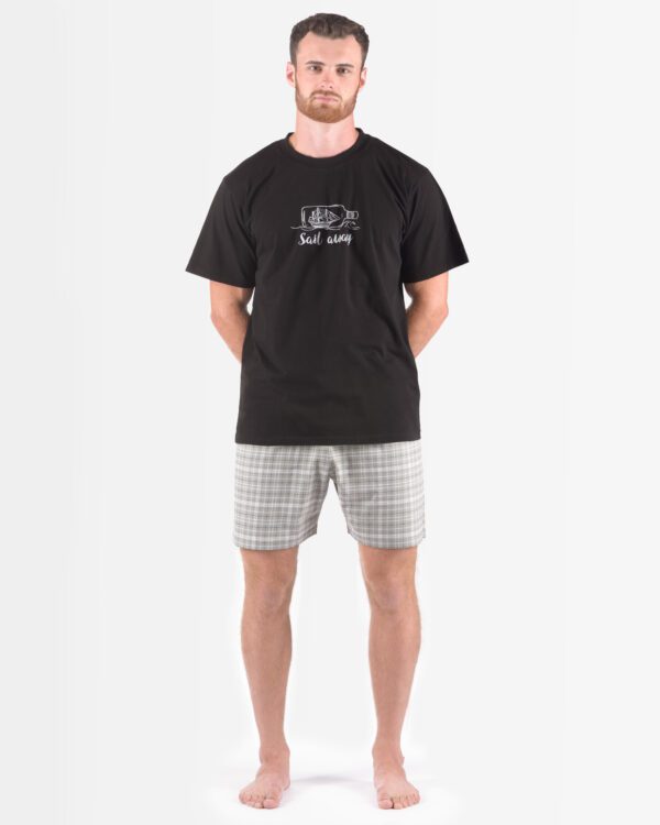 Chcete zažiť večery plné pohody a voľnosti? Tento pánsky pyžamový komplet s krátkymi nohavicami vás očarí! Vzdušná kombinácia jemného bavlneného úpletu (100 % bavlna) sa prispôsobí každému pohybu a oceníte ju hlavne v teplejších mesiacoch. Jednoduchý nadčasový strih dopĺňajú štýlové kárované šortky, ktoré držia tvar a neobmedzujú pri leňošení ani spánku. Tričko s krátkym rukávom zvýrazňuje moderný potlač na hrudi – príjemný detail, ktorý dodá šmrnc vašim nočným rituálom. Súprava je navrhnutá s ohľadom na maximálnu voľnosť pohybu a komfort, pričom bavlna odvádza vlhkosť a je šetrná k pokožke. Vychutnajte si každú noc aj letné rána v outfite, ktorý spája eleganciu s hravosťou – lebo vy si zaslúžite to najlepšie.