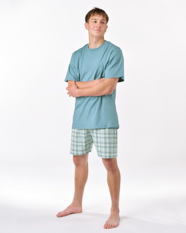 Pánske krátke pyžamo značky GINA je vyrobené z 100 % česanej bavlny, ktorá zabezpečuje výnimočný komfort pri nosení. Materiál je jemný na dotyk, priedušný a umožňuje pokožke dýchať, čo je ideálne pre pohodlný a nerušený spánok počas teplých nocí. Tento model má voľný strih, ktorý nenarušuje pohyb a poskytuje maximálnu slobodu. Krátke nohavice s obľúbeným kockovaným vzorom dizajnovo dopĺňa tričko s krátkymi rukávmi, čo vytvára nenútený, klasický vzhľad nočného oblečenia. Pyžamo je odolné, ľahko sa udržiava a zachováva si farebnú stálosť aj po viacerých praniach. Ideálne pre mužov, ktorí ocenia prírodné materiály a jednoduchý štýl v spojení s maximálnym pohodlím. Táto kolekcia je navrhnutá s dôrazom na kvalitu a funkčnosť, aby vám priniesla pocit sviežosti a relaxu každú noc.