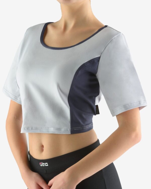Krátke športové tričko s krátkym rukávom je dokonalou voľbou pre aktívne ženy, ktoré si neodpustia eleganciu. Vyrobené z jemnej prírodnej bavlny (90 %) s prídavkom elastanu Lycra (10 %), materiál je extrémne pohodlný, priedušný a pružný, čo zaručuje úžasný komfort počas celého dňa. Tričko siaha pod prsia a je doplnené kontrastným lemovaním a bočnými vsadkami, ktoré zvýrazňujú moderný a dynamický vzhľad. Jemné logo na boku dokonale podčiarkuje jeho prémiový charakter. Tento kúsok je ideálny pre každodenné nosenie, ale aj na športové aktivity, keď chcete byť sebavedomá, štýlová a zároveň sa cítiť príjemne a voľne.